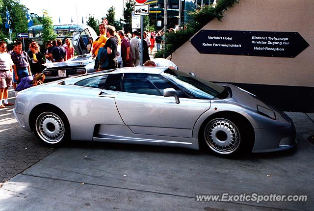 Description Two EB110's pulling a crowd at a Hotel near Stuttgard/Germany in the early nintees when these were just launched. iff you look well you'll see the other one is a SuperSport.