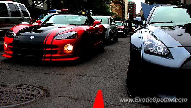 Nice Viper passing by the Godzilla GT-R parked on Ste-Catherine. This was on Saturday during the F1 weekend.