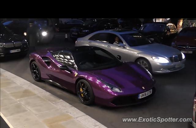 Beautiful purple Ferrari driving in London. I believe a chrome purple, black accents. Stunning.