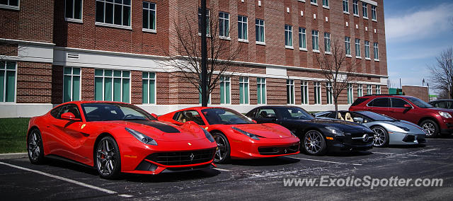 Another shot of this insane combo of a Ferrari F12 Berlinetta, 458 Spider, SLS AMG, Aventador Roadster