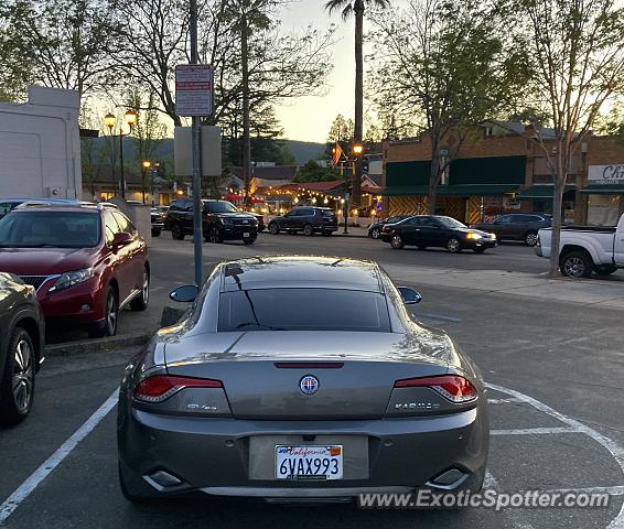 Description silver fisker karma on Main Street. First spot! After I examined it closely I saw that the grille had styrofoam in it. Lots of people were stopping and looking At it. Defiantly an eye catcher.