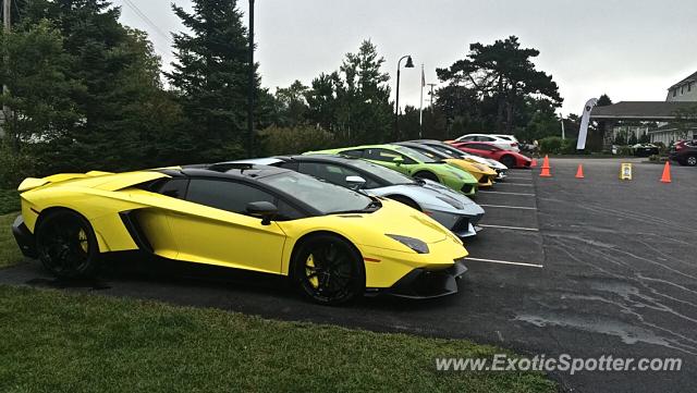 Description More of the Lamborghinis at the Inn by The Sea. There are 6 Aventadors, a Huracan and a Gallardo in this picture. Two of the Aventadors are 50th Anniversarios.