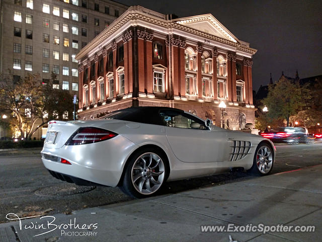Description Easily my favorite night shot I have taken! We saw this 2008 SLR drive past the Mandarin and I couldn't get any shots of it, though after searching for it for about a half hour, we finally found it parked by Starbucks on Berkley Street. It ended up a perfect location to get the building, now a Restoration Hardware, in the background!