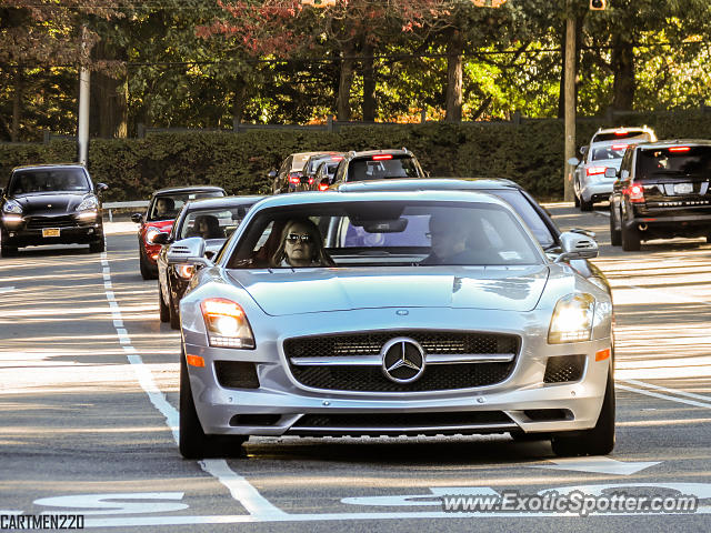 Description This SLS was entering the spectator lot at the Concours. Brownie points for anyone who can spot the other exotic in this photo! See this photo in HD here: http://www.flickr.com/photos/cartmen/10542456836/