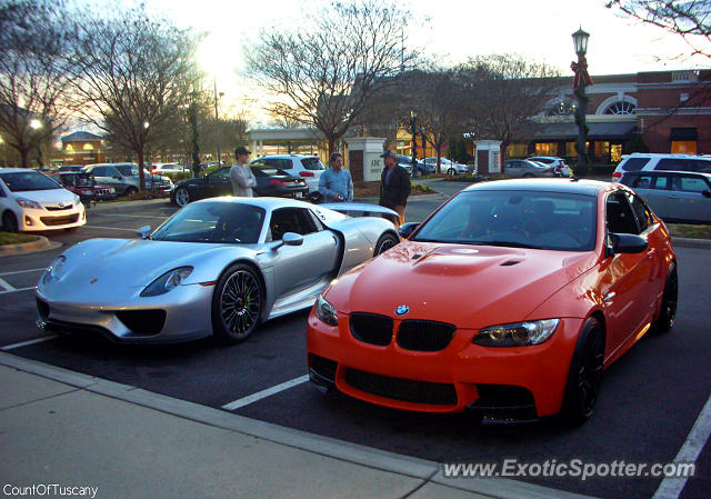 Description I never thought I would actually see one of these, but then we pulled up to the intersection of Colony Rd. and Sharon Rd, and I saw this orange M3 in the turn lane for a Harris Teeter plaza. Then the 918 pulled up behind it! We followed them into the plaza, and they pulled up at the ABC shop. The owner was really nice, and let us all sit in it (it's VERY low and awkward). And the M3 is apparently a Lime Rock Edition (1 of 200) which makes it even rarer than the 918! Without a doubt my spot of the year!